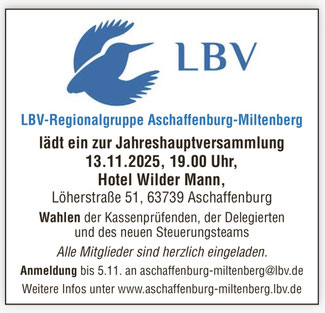 Die LBV-Regionalgruppe Aschaffenburg-Miltenberg ist in Stadt & Kreis Aschaffenburg und Kreis Miltenberg für die Natur im Einsatz.
