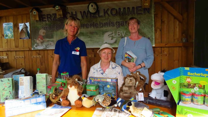 Die Kinder hatten viel Spaß beim Herstellen eines Saltzteigigels, den sie hinterher mit nach Hause nehmen durften. Mit Eifer wurden Augen und Stacheln eingesetzt und jeder Igel war ein kleines Kunstwerk. Igelhaus und Igelfutter aus dem LBV Shop fanden reisenden Absatz und mancher Naturliebhaber versorgte sich jetzt schon mit einer Futtersäule für den Winter.