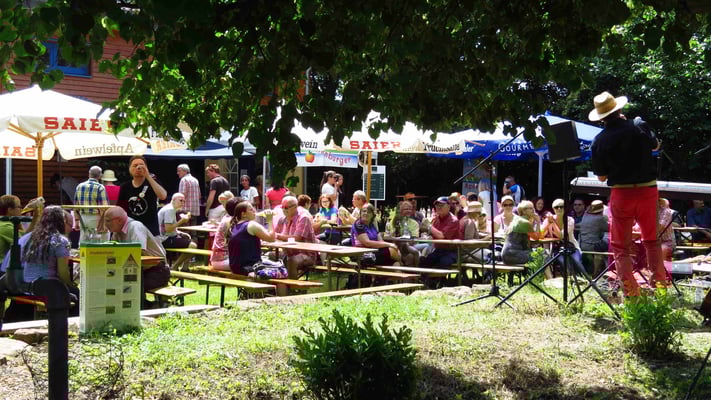 Unser Schlaraffenburger Apfelsaft hatte viel Zulauf, denn inzwischen kennt man das Biosortiment in der ganzen Umgebung. Es schmeckt und es trägt zum Erhalt unserer Streuobstwiesen bei.
