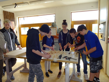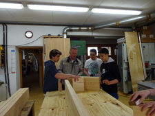 Teamwork in Goldbach wird groß geschrieben. Am 8. April fand der Werkunterricht der 8. Klasse der Mittelschule mal nicht im Werkraum der Schule statt, sondern in der Schreinerei Olbrich. Der LBV hat sich für den renovierten Trafoturm noch ein Insektenhotel gewünscht und wie immer war Herr Olbrich zur Stelle. Seine Idee, Goldbacher Schüler mit einzubeziehen, fiel bei ihrem Lehrer Thomas Stenger und Rektor Stein auf fruchtbaren Boden. Sechs Jungen und zwei Mädchen fanden sich mit Lehrer Stenger erwartungsvoll in der Werkstatt ein und gaben ihr Bestes. Es wurde unter Anleitung des Schreiners gebohrt, geschliffen und gesägt . Der Geselle Markus Rüttger stand allen ebenso mit Rat und Tat zur Seite. Ellen Kalkbrenner klärte die Schüler darüber auf, welche Tierarten in einem Insektenhotel wohnen und was an Füllung benötigt wird, damit sich Wildbienen, Marienkäfer und Co darin wohlfühlen. Man sah den Jugendlichen den Spaß bei der Arbeit an. Mit Profigeräten umzugehen in einer echten Schreinerei ist doch mal eine Abwechslung vom normalen Unterricht und man lernt eine ganze Menge dazu. Wenn das große Insektenhotel fertig gebaut und befüllt ist, wird es am Trafoturm angebracht und alle können das Ergebnis bewundern. Dann fehlen nur noch die Bewohner, die sich hoffentlich in großer Zahl einfinden.