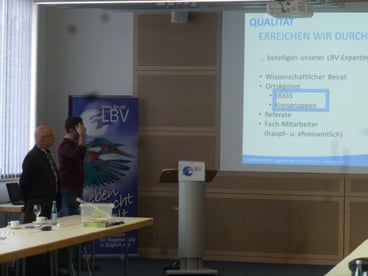 Am Wochenende den 23.und 24. Oktober fand in der Kongresshalle in Amberg die jährliche LBV Landestagung statt. Aus allen Teilen Bayerns reisten die Vorstände und Delegierten der Kreisgruppen und die Mitarbeiter der Zentrale an. Norbert Schäffer, unser Landesvorstand, begrüßte alle aufs herzlichste und hob die Leistung der vielen Ehrenamtlichen hervor. Er betonte, dass der LBV ein Verband sei, der stets den Dialog sucht. Dazu passte die Einladung von Eric Grimm vom Landesjagdverband. Herr Grimm freute sich über die Gelegenheit Naturschützern die Gemeinsamkeiten darzulegen, was Hege und Schutz der Natur betraf. Dazu passte der Vortrag von Dr. Christof Janko von der Landesanstalt der Landwirtschaft in Bayern. Da die Population von Flora und Fauna, speziell auf den Wiesen stark zurück geht, müssen wir alle an einem Strang ziehen, war die einhellige Meinung. Viele interessante Vorträge von Fachleuten des LBV und Naturschutzbehörden rundeten das Bild ab. Über die vielfältigen Aktionen mit Kindergruppen in ganz Bayern berichtete der Jugendbeauftragte des LBV. Wer als Kind lernt auf die Natur zu achten, wird dies auch später tun. Die Umweltministerin Ulrike Scharf konnte leider an dem Wochenende nicht dabei sein, hatte aber eine Videobotschaft geschickt. Sie weiß was der LBV für die Umwelt leistet und ist häufiger Gast bei verschiedenen Veranstaltungen des LBV. Die gemeinsame Zeit in Amberg wurde wie immer von allen genutzt, um Erfahrungen auszutauschen, von Aktionen der einzelnen Kreisgruppen zu berichten oder auch Mitarbeiter der Zentrale zu treffen, die jedes Jahr dieses Wochenende mit viel Aufwand planen. Müde aber zufrieden mit der gelungen Veranstaltung ging man am Sonntagnachmittag auseinander.